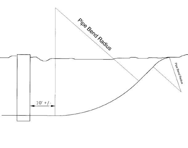 Directional Drilling requires excavations at both ends of the works to the depth of the line. While the exit (for the PE100 pipe) end where the drill rig is located does not need to accommodate the pipe as shown in Figure 1 it does need to provide sufficient space for the drilling rods and for the PE100 pipe to emerge and be disconnected from them without bending. At the entry end, remote from the drill rig, an excavation length as per Figure 1 will be required. At this end it will also be necessary to lay the full length of the pipe string on the surface in the line of the installation.